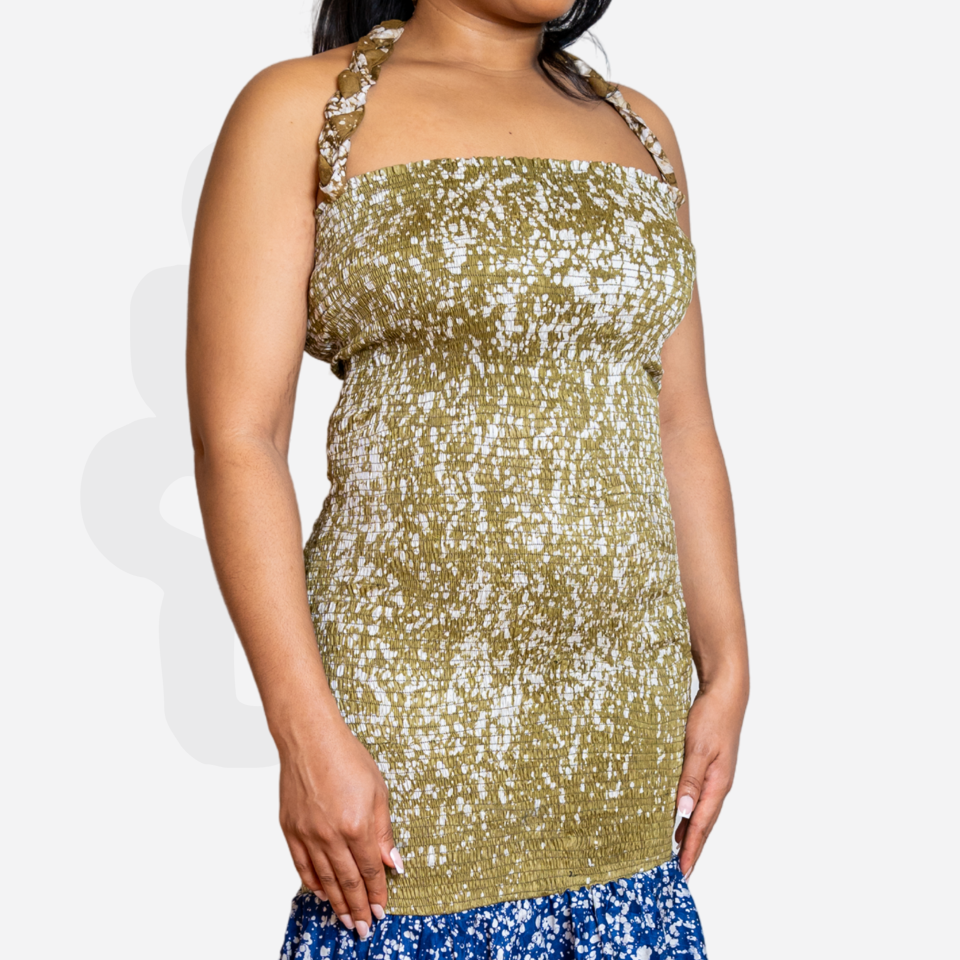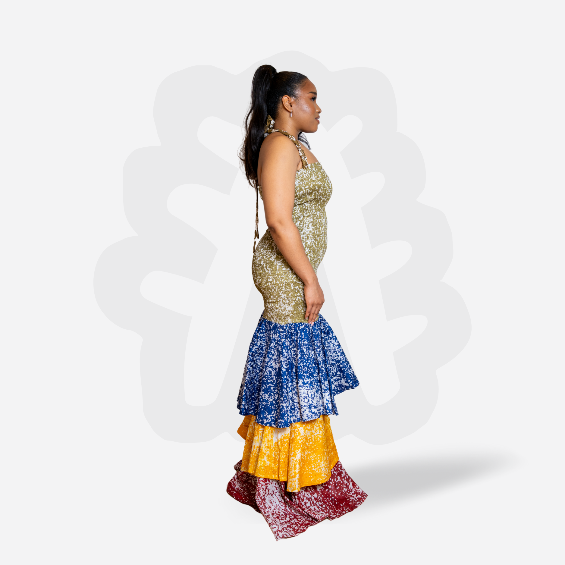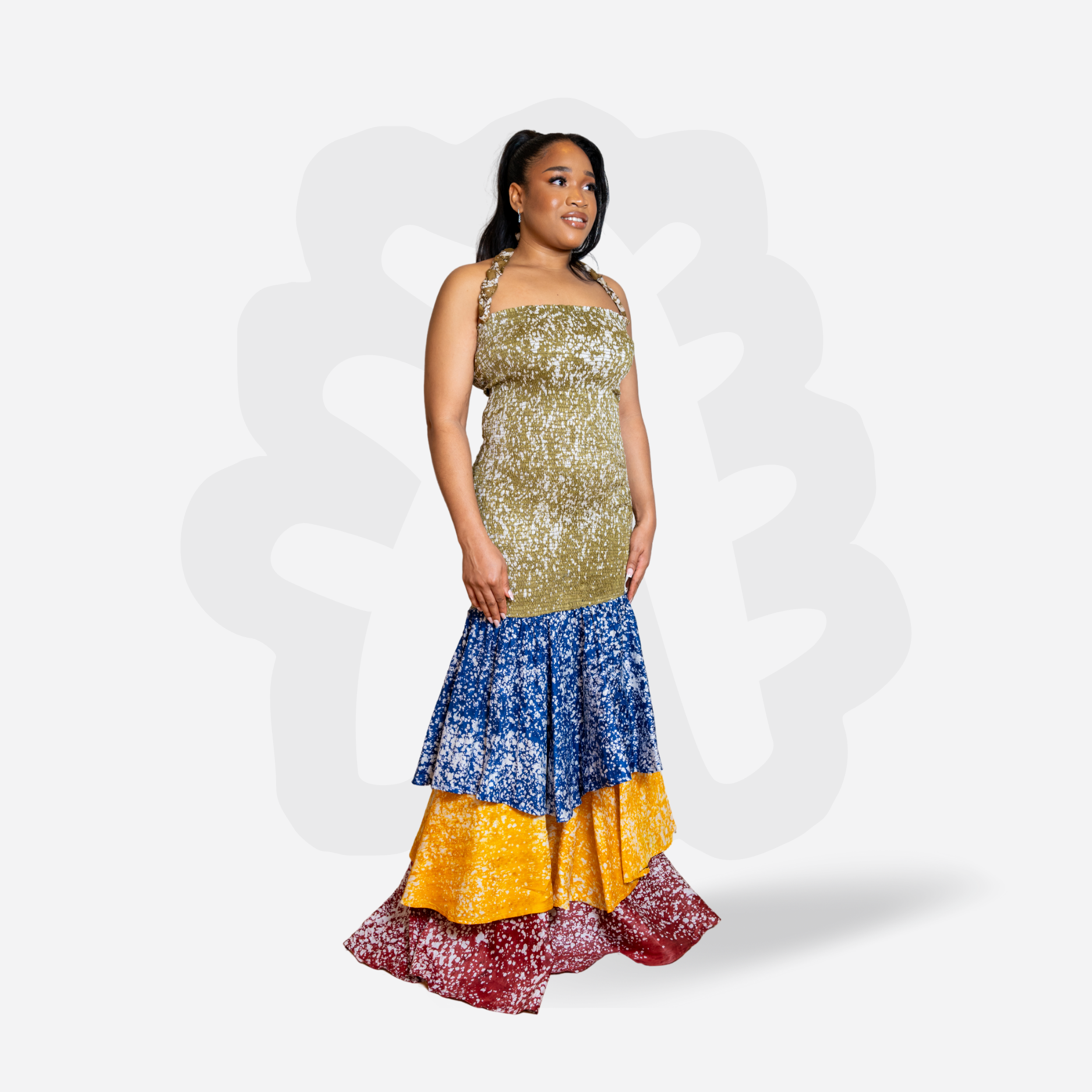 This body toning layered dress is crafted from 100% cotton, hand-dyed using traditional Adire techniques. Each panel features a different vibrant pattern and color, carefully assembled into a harmonious patchwork design — no two are the same. fits a Size EU 36-42